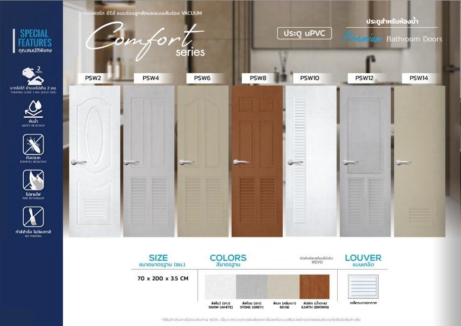 PSW4 ประตูห้องน้ำ UPVC ผิวเสี้ยนไร้ขอบ ( เจาะ ) 70x200cm. สีเทา